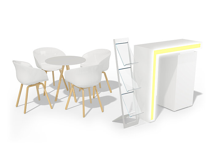 Our stand construction packages do not include furniture. However, once you have been approved as an exhibitor, you have the option of booking various items of furniture and other additional equipment in our Online Service Centre.